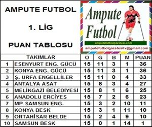 Ampute Futbol 1. Lig 15. hafta maç sonuçları ve puan durumu.