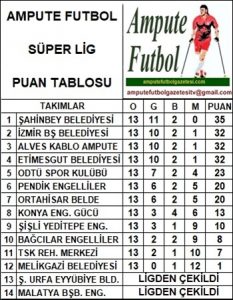 İzmir Büyükşehir Belediyesi ve Pendik Engelliler’in hükmen galip sayıldığı 13. hafta sonunda alınan sonuçlar ve oluşan puan tablosu.
